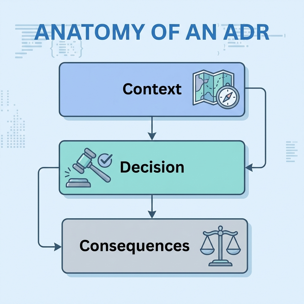 この章は「とりあえず迷わず書き始められる“型”」を手に入れる回だよ〜!😊✨ ADRは、重要な設計判断を Context(背景)/ Decision(結論)/ Consequences(結果) とセットで残すドキュメントだよ📒💡 (GitHub)
