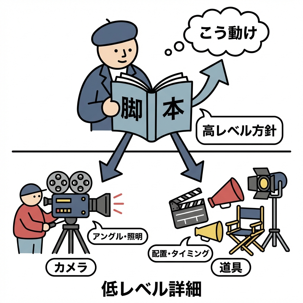 3) イメージで理解しよ!上位=“脚本”、下位=“小道具”🎬🎭