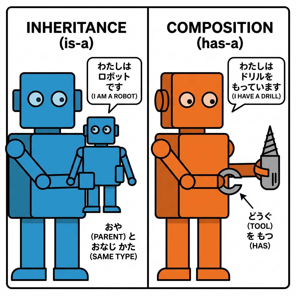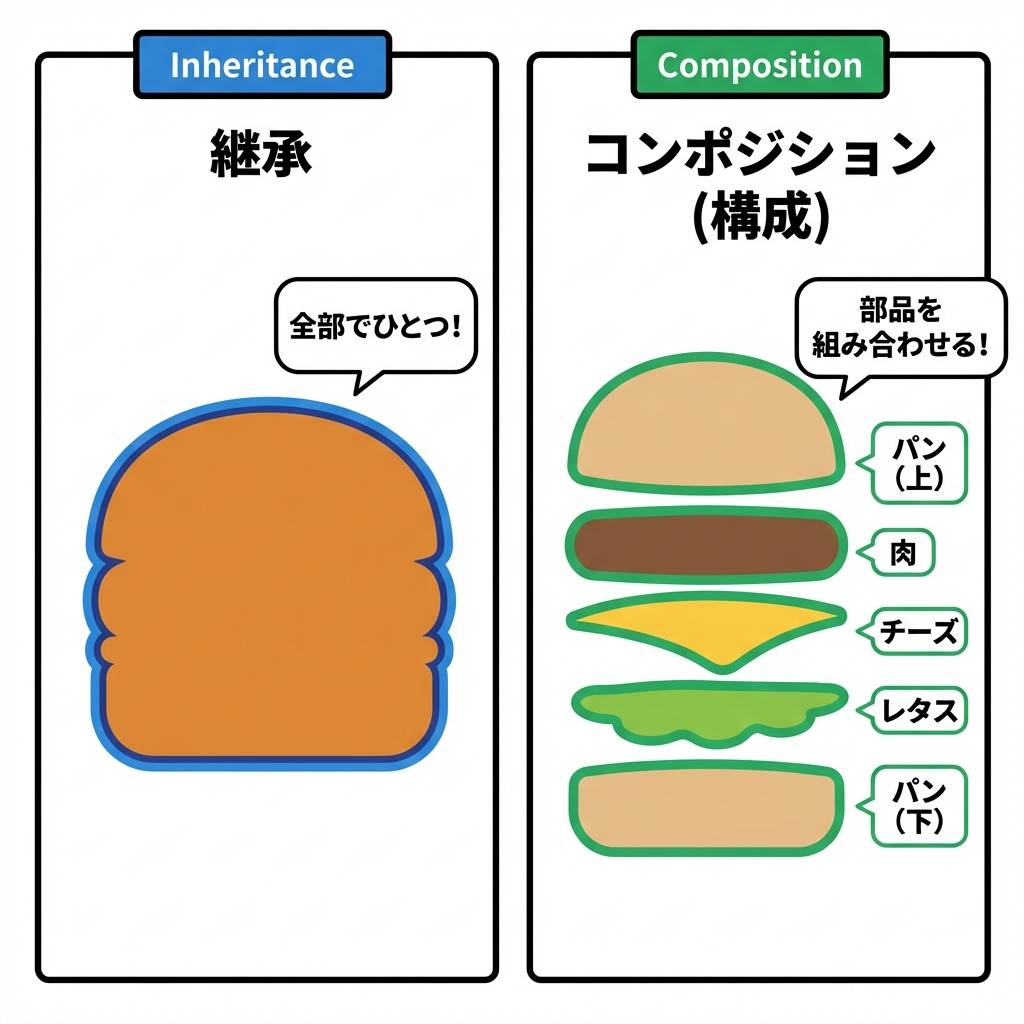 - 継承で書いちゃったコードを「部品の組み合わせ」に直せる🧩🔧