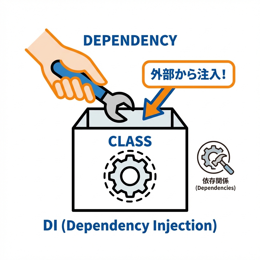 「あなた(クラス)が使う部品は、外から渡すね〜」って感じ😊