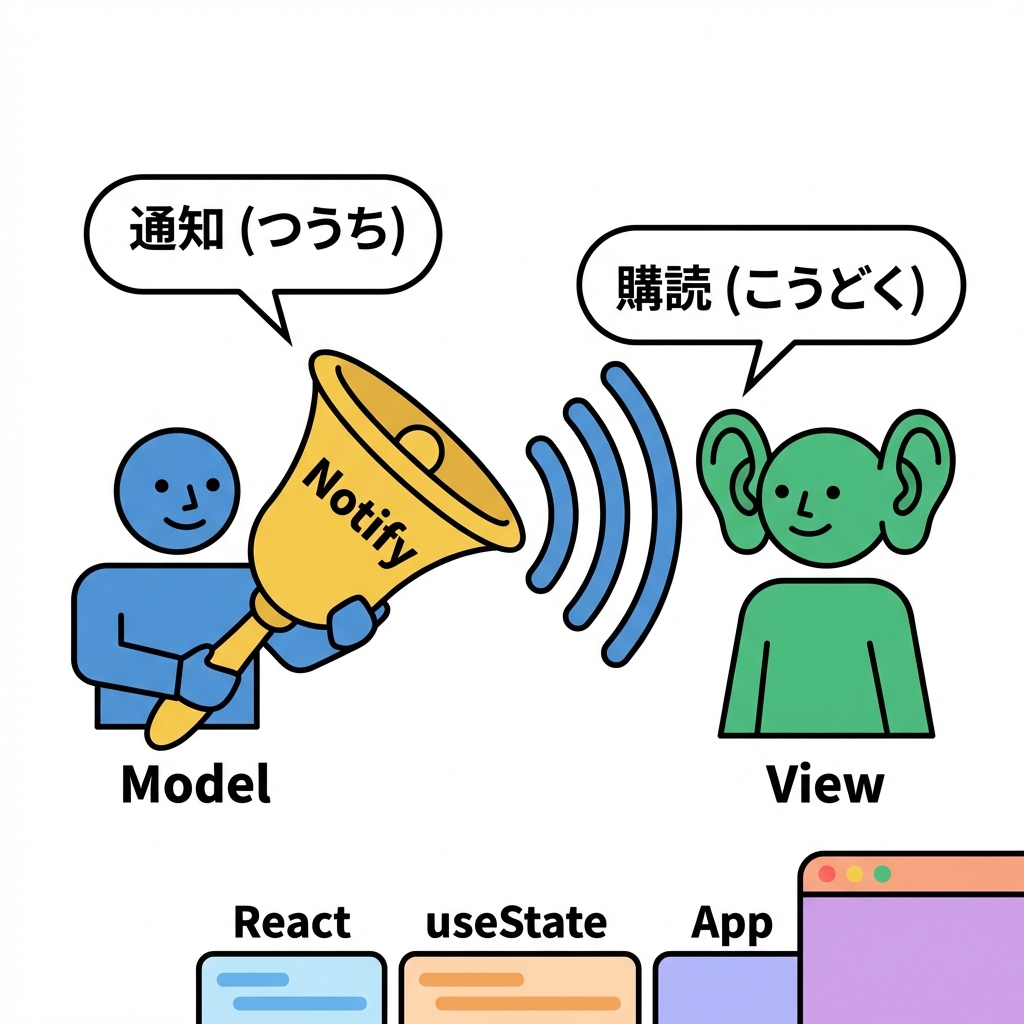 ここがこの章のキモ! Modelが変わったら“自動で再描画”されるようにして、流れを固定します🔁💕