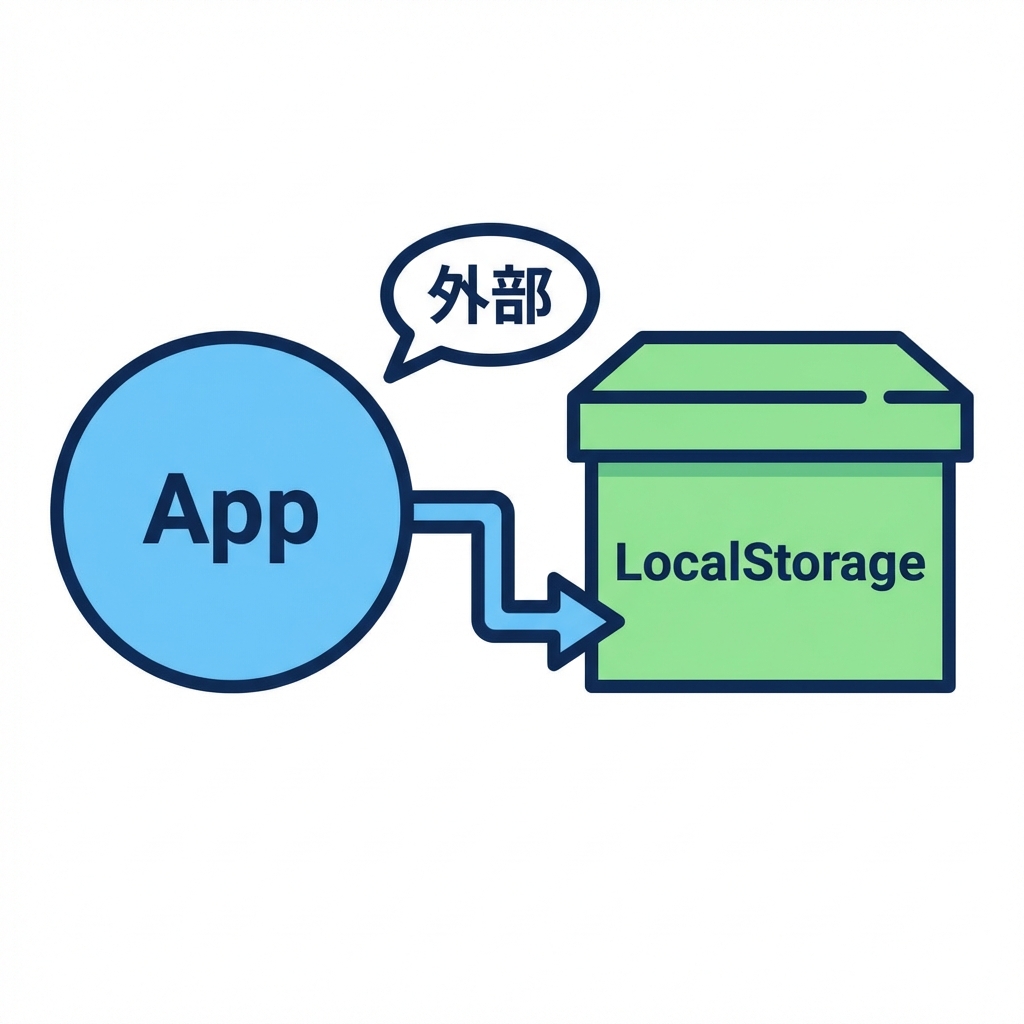 保存(localStorage / サーバー / DB)って、アプリの外側の世界だよね🌍